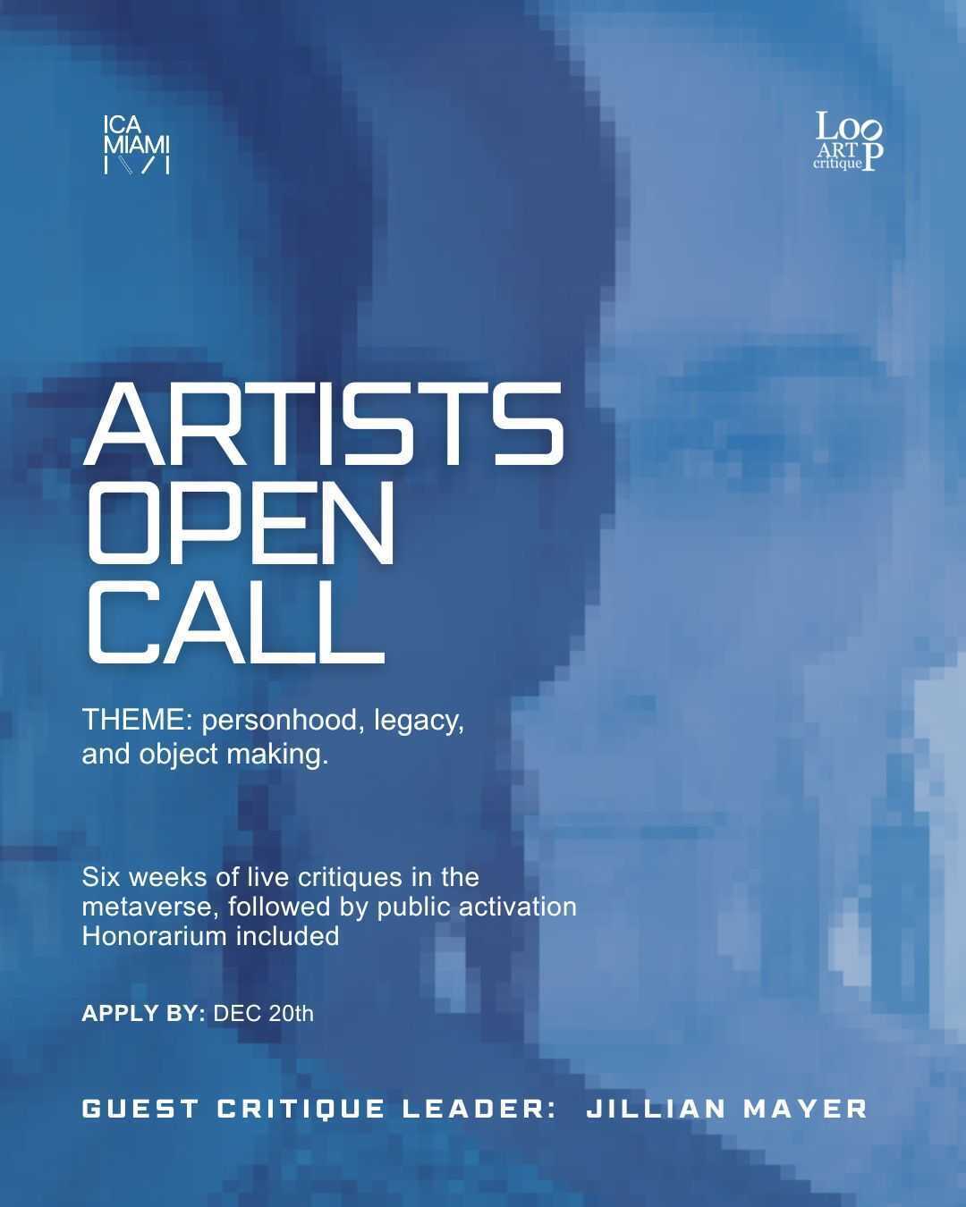 Media artists are invited to join a special Critique Club with Loop Art Critique and Guest artist Jillian Maye. The theme is personhood, legacy, and object making, artists who relate to the theme are encouraged to apply.