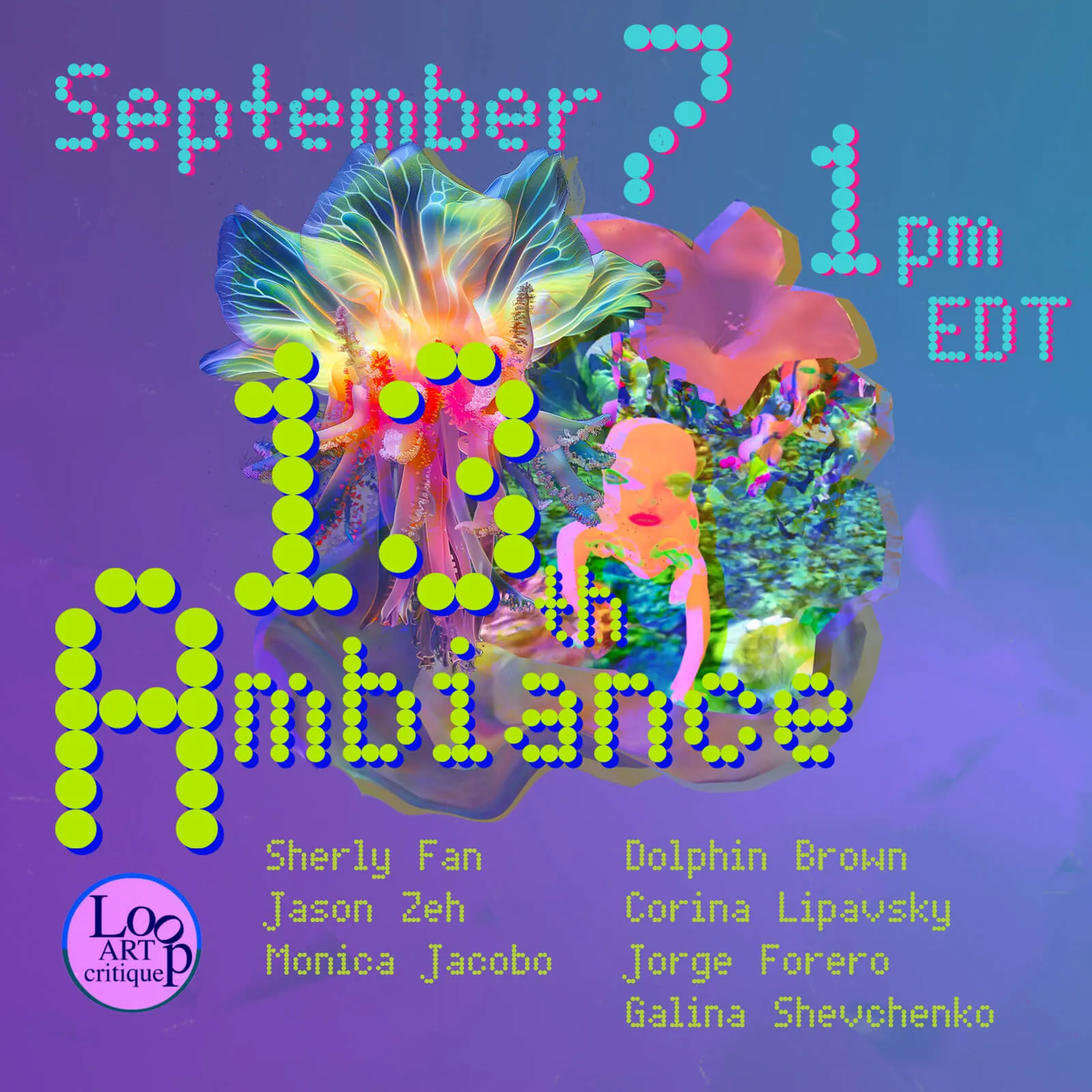 The second phase involves participants curating a public showcase of their work, culminating in an online reception, typically scheduled for a Friday from 1 to 3 pm EST. This event is documented and shared on Loop's YouTube and Twitch channels. The exhibition is for month.