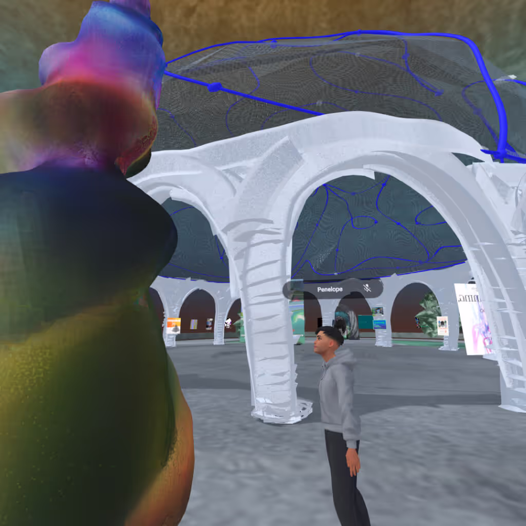 In the first phase, participants engage in a six-week residency featuring live critiques held on Mondays and Wednesdays from 12 to 3 pm EST. During this time, they are immersed in a collaborative learning environment within a spatial internet environment aka a metaverse.